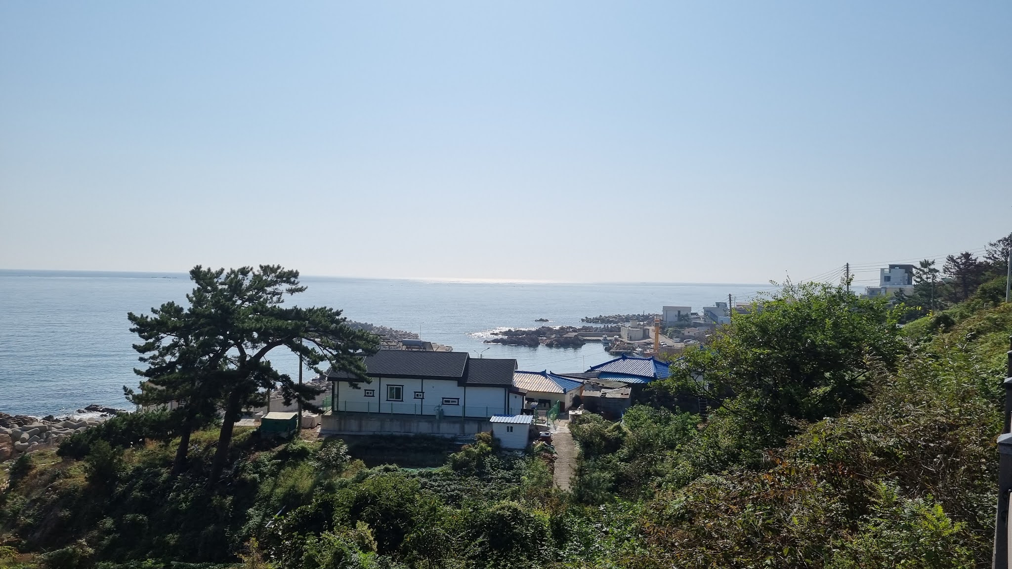 With lunch finished, I headed off in search of another place to stay, hoping to find a motel. The 여기어때 app said there was a motel 5 km back where I'd come from, but fuck that. So I continued forward down the coast. A bit before I reached the next town, I happened upon White Whale Pension (W100,000), so here I am for the night. The lady running the place was very friendly and solicitous. She's asked me to text her tomorrow morning to let her know I'm leaving. "Even at 5:30 a.m.?" I asked, and she said that would be fine.